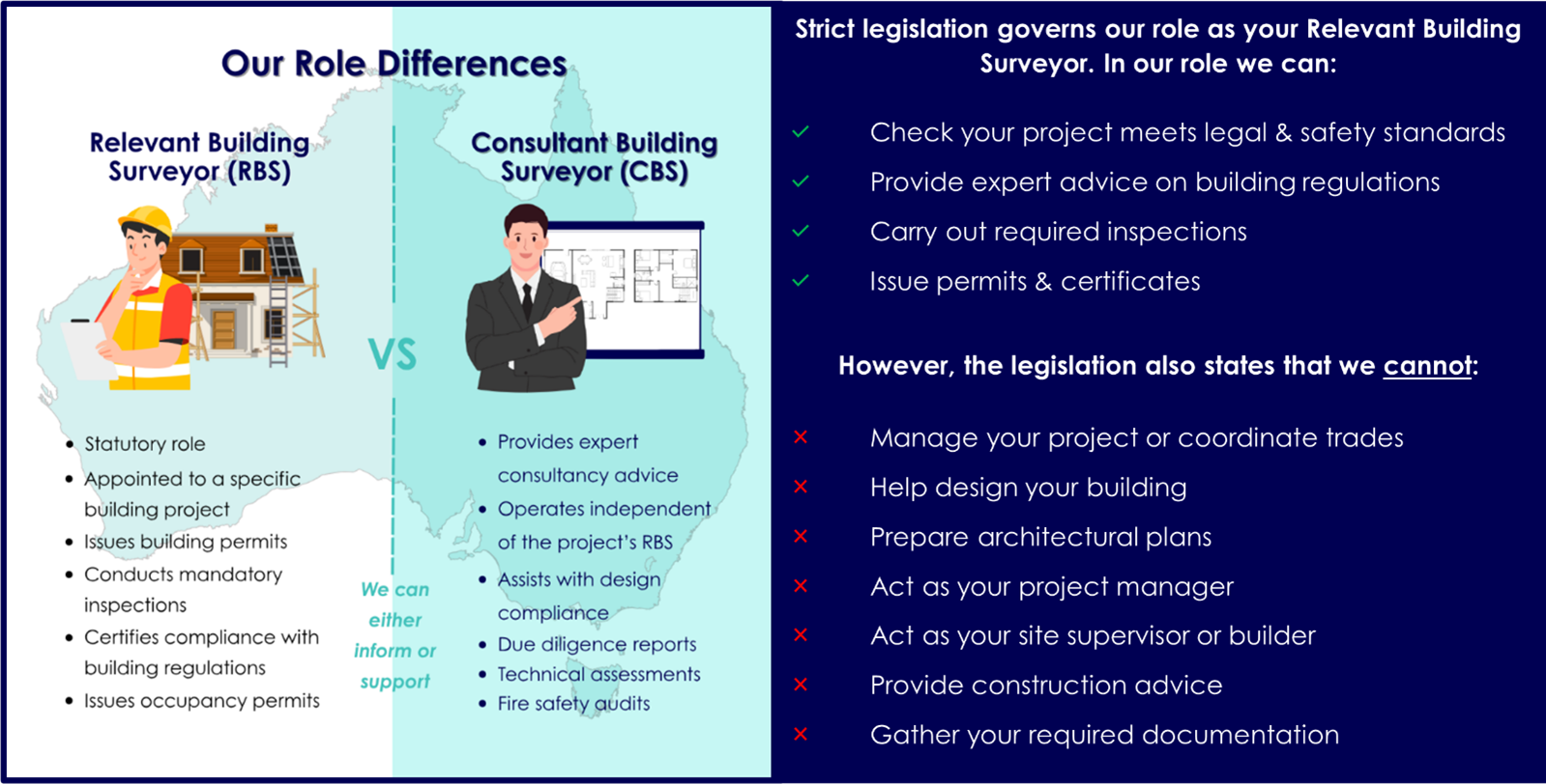 We offer tailored consulting services that cover a wide range of building-related matters—from interpreting the National Construction Code (NCC) and Building Regulations to advising on performance solutions, fire safety and accessibility.